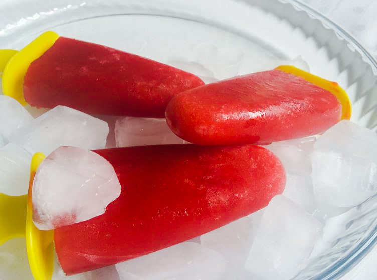 Z posledních jahod, prvních žlutých a červených malin a několika kuliček černého rybízu, dostaly o víkendu moje děti nanuky. Syn nesmí mléčné výrobky a tak byla volba jednoduchá.